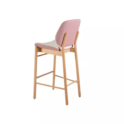 The Abbie BK barstool combines modern design with lasting comfort. Its beech wood frame, available in multiple stain finishes, features a wooden footrest for support. The upholstered seat and backrest, offered in professional fabrics or faux leather, provide a stylish and comfortable seating solution for bars and other horeca locations.