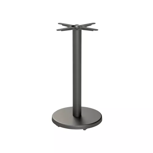 Its clean and timeless design allows it to be combined with various tabletops up to a maximum size of 80 cm. The base is finished in black, making it easy to integrate into different interior styles. The same design is also available as a standard table base, allowing interiors to be furnished in a consistent look. Also available in a standard height version suitable for restaurant or café tables.
