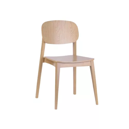 The Alfie is a stylish wooden side chair crafted from solid beech wood and beech plywood, featuring a veneered seat and back for a sleek, elegant look. Perfect for restaurants, cafés, bistros, and fast-food interiors, it combines durability, comfort, and timeless design to enhance any indoor dining space.