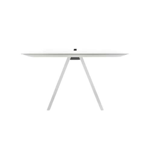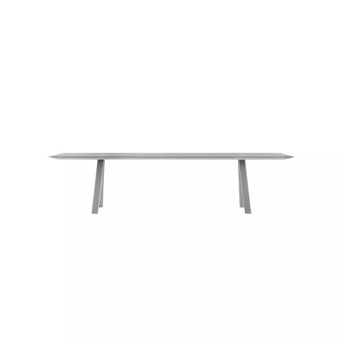 Table featuring sturdy steel trestle legs combined with a top supported by a durable extruded aluminium frame.