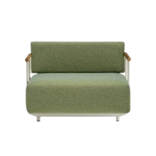 Arki-Sofa Plus ASP0010/0111/0012 features plush polyurethane foam cushions with water-repellent fabric covers, set on an extruded aluminium frame with elastic straps and stainless steel legs. Its Ø40 mm stainless steel and teak backrest and armrests create a stylish, durable seating ideal for lounges and restaurants.