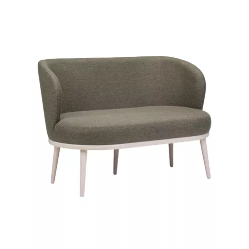 Aurette Double is a stylish lounge sofa designed for horeca spaces. Built with a solid beech wood frame available in a range of stain colors, it features a fully upholstered seat and backrest. The soft, curved lines and elegant design provide a refined look, while the wide choice of professional fabrics or faux leather allows complete customization to suit various hospitality interiors.