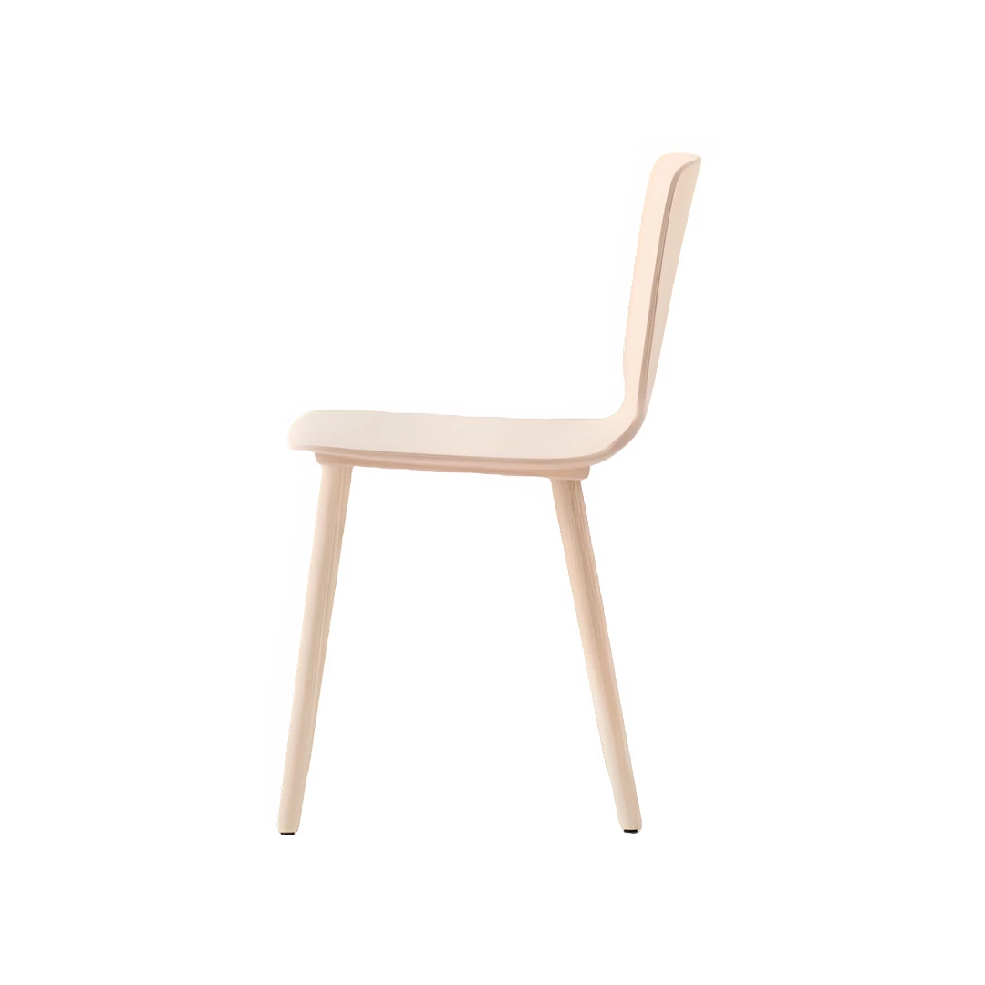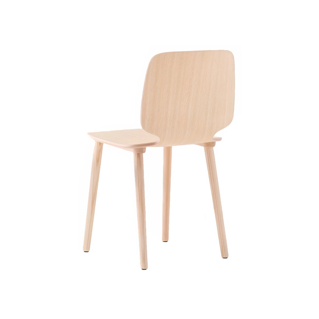 Its seat is crafted from ash plywood with variable thickness, creating an ergonomic shape that offers both visual lightness and comfort. The solid ash wood legs provide sturdy support and natural elegance, making the chair suitable for a variety of settings—from contemporary dining rooms to stylish office spaces.