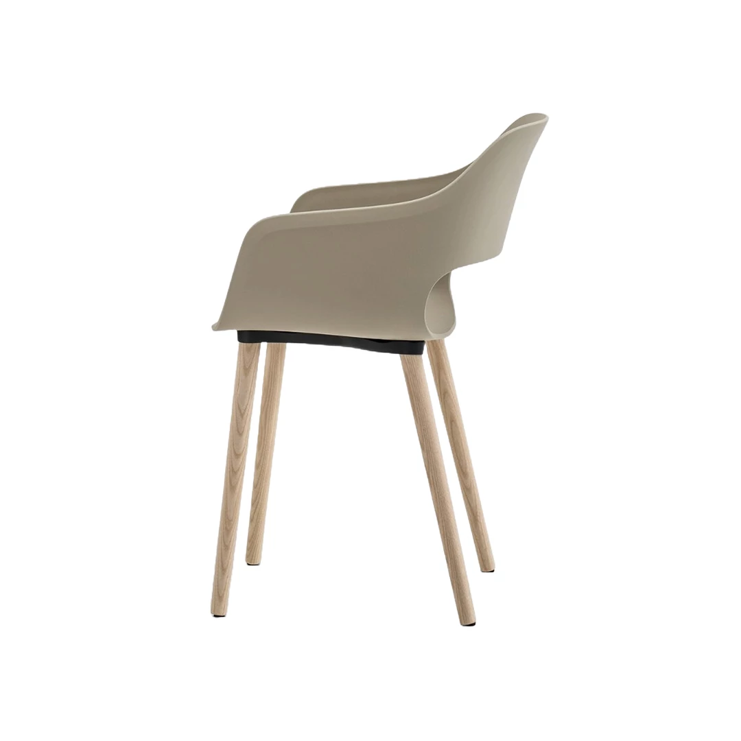 The Babila 2755 armchair seamlessly blends tradition with modern innovation, expressing its strength through a minimalist design with a timeless aesthetic. It features a polypropylene shell reinforced with fiberglass, offering antistatic and UV-resistant properties. Crafted using gas-air molding technology, the shell ensures durability and precision. The solid ash wood legs are finished with a water-based, matte (5 gloss), scratch-resistant lacquer that enhances the natural grain. The feet include interchangeable inserts: felt type “15” for delicate surfaces such as wood, ceramic, and marble, and plastic type “17” for softer or rougher floors like carpets, concrete, and metal.