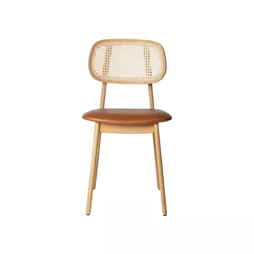 Beneton PS is a refined contract chair crafted with a solid oak wood frame. It features an upholstered seat and a cane backrest, combining visual elegance with daily durability. Available in a wide range of fabrics or artificial leather.