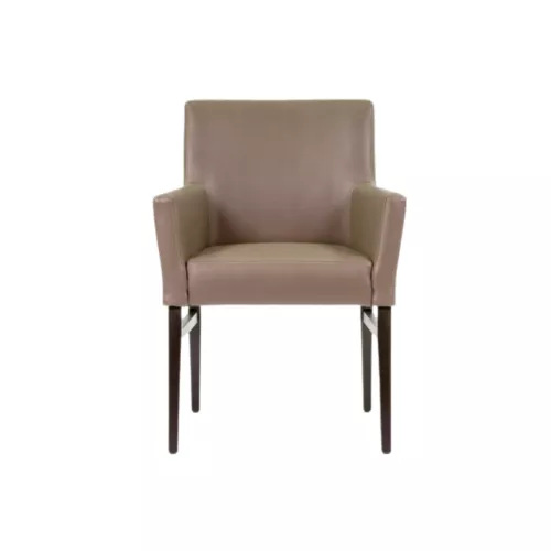 Bernard A is a comfortable wooden chair with armrests, crafted with a durable beech wood frame. Designed for horeca use, it offers style and reliability in any setting. The seat and back can be upholstered in a wide range of professional fabrics or faux leather, all suitable for intense wear and high-traffic interiors.
