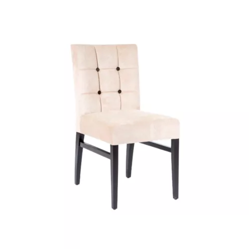 Bernard S Square Capitons is an elegant wooden chair crafted with a solid beech wood frame available in various stain finishes. Designed for horeca spaces, it features a comfortable upholstered seat and decorative capitons stitching on the backrest. Choose from a wide range of durable fabrics or faux leather to match any interior style.