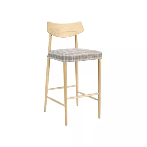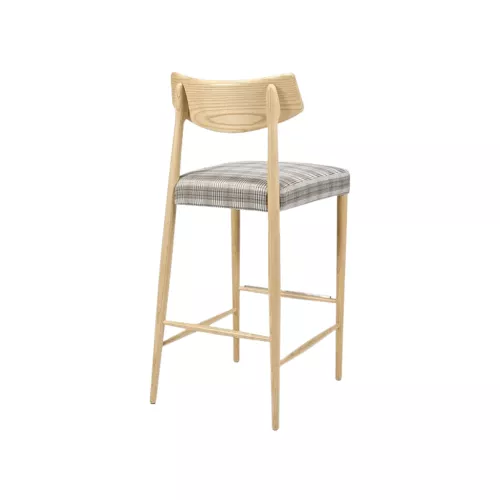 Elegant barstool crafted from solid beech wood and ash wood, blending natural beauty with durability. Its refined silhouette makes it suitable for a wide range of Horeca interiors, from classic to contemporary. The wide variety of wood stain finishes allows perfect adaptation to any setting, enhancing the overall atmosphere with warmth and sophistication.