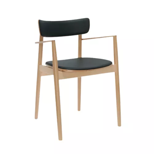 The Bobby A chair is part of a versatile collection designed for high-traffic hospitality environments. Crafted from durable beech wood, it offers multiple customization options: wooden seat and back, upholstered seat, or fully upholstered. The seat and back can be finished in contrasting colors or upholstered in the client’s own material. A unique rear leg hook allows coats or bags to be conveniently hung. The series includes a chair, armchair, lounge chair, and barstool – all perfect for blending into any interior.