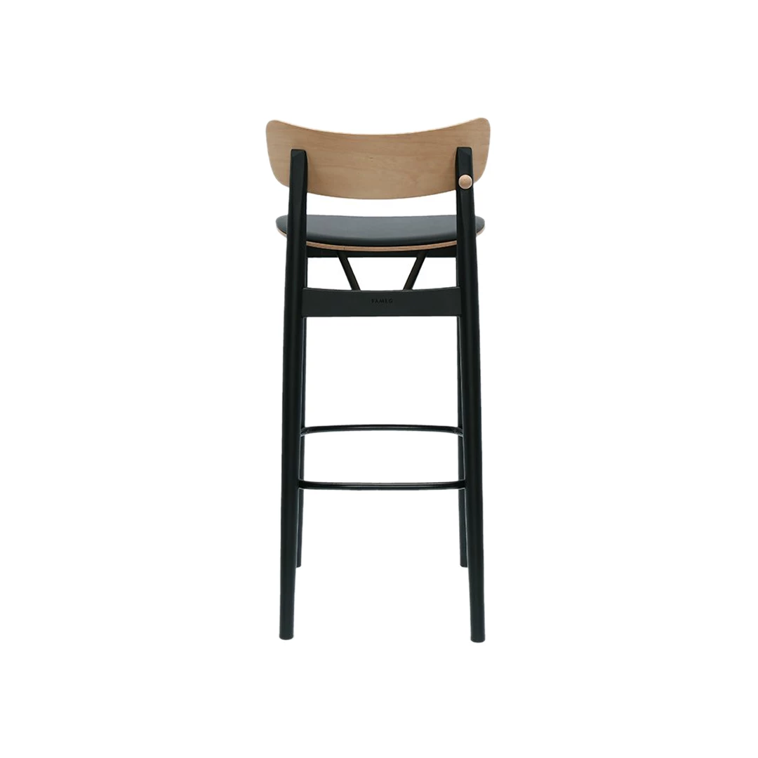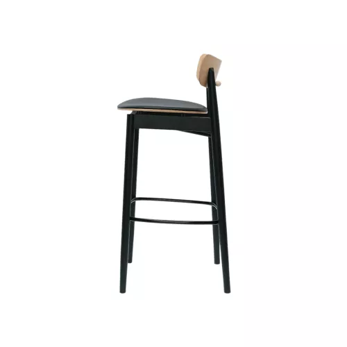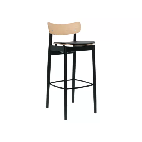 The Bobby BK is a compact, lightweight armchair designed especially for hospitality environments. Built on a durable beech wood frame, it withstands high traffic while offering versatility through a wide selection of upholstery and wood finishes. The seat and backrest can be customized in different colors or upholstered with customer-supplied fabric. A distinctive back-leg support serves as a stylish and practical detail for hanging coats or bags, making it both elegant and functional. The Bobby collection includes models with or without armrests, a lounge version, and a barstool.