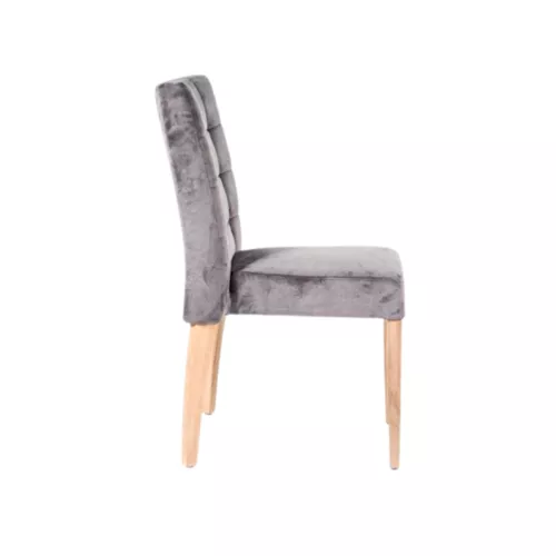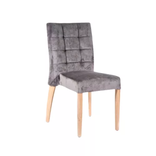 Chair with a solid beechwood frame, featuring an upholstered seat and backrest enhanced with decorative stitching. Available in a wide selection of fabric options upon request. This model can also be personalized with customer-supplied fabric, ensuring perfect coordination with any interior concept.