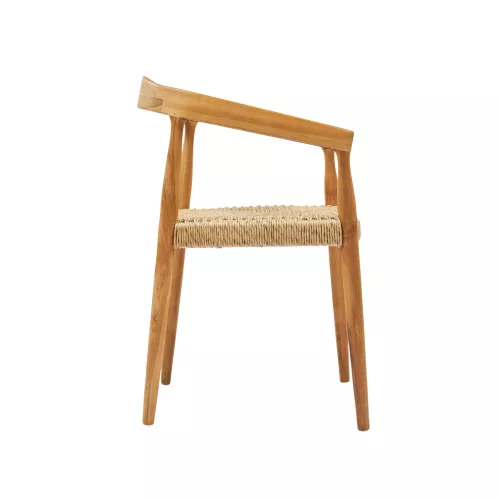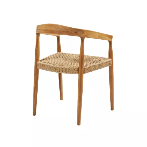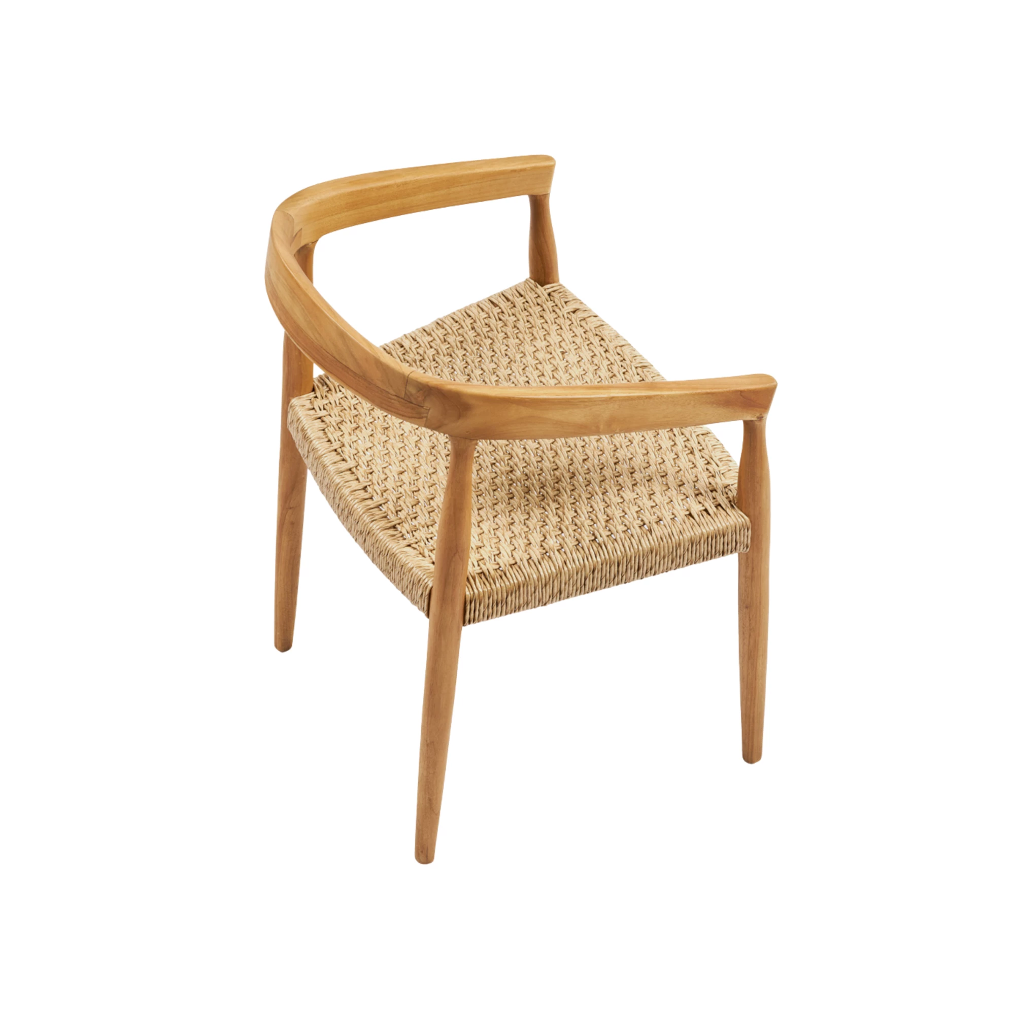 Armchair made of durable teak wood, featuring a seat woven with high-quality synthetic rattan. Suitable for outdoor use on terraces, patios, and garden areas, combining natural materials with weather-resistant performance. Dimensions: 55x51x78 cm.