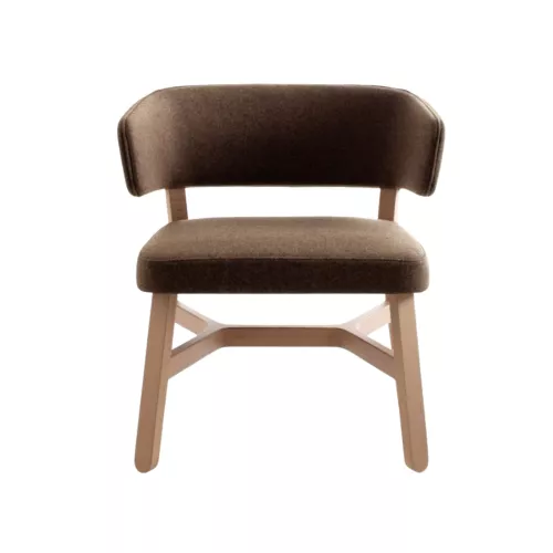 Croissant 572 is a lounge chair that combines elegant design with everyday comfort. Crafted with a solid beech wood frame, this upholstered piece features a curved backrest that invites relaxation. Available in a wide range of fabrics and wood stain finishes, it fits effortlessly into any hospitality interior.