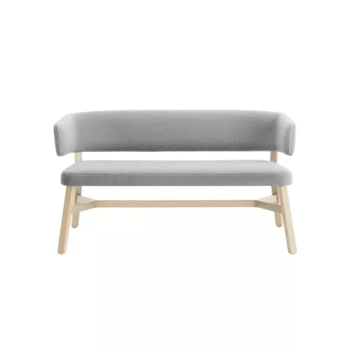 Croissant 573 is a contemporary upholstered sofa designed for horeca interiors. Built on a solid beech wood frame, it features a comfortable padded seat and backrest. The frame is available in standard stains or custom RAL colors. Its durable upholstery, available in a wide range of professional fabrics or faux leather, makes it ideal for commercial settings of any style.