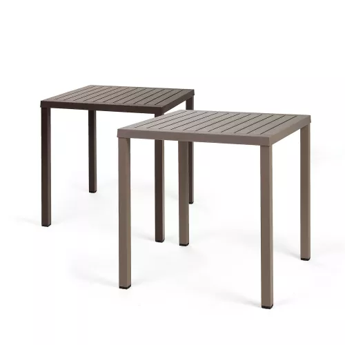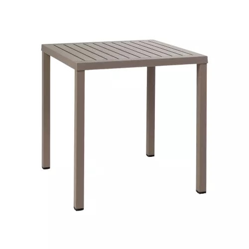 Cube 70 is a modern and practical outdoor table designed for horeca use. Featuring a 70x70 cm top, it is made of UV-protected polypropylene and has sturdy coated Aluminium legs. Stackable and weather-resistant, it’s also available in an 80x80 cm version.