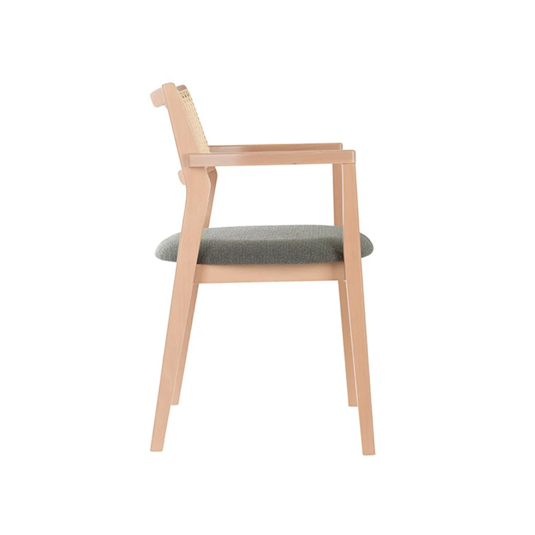 Introducing the Daisie A, a stunning blend of elegance, comfort, and craftsmanship designed to elevate any indoor dining experience. Expertly crafted as a wood chair with a fully upholstered seat and back, Daisie A offers superior comfort while exuding timeless style. Its thoughtfully designed armrests provide extra support, making it ideal for long, leisurely meals or social gatherings. Perfectly suited for restaurants, cafés, bistros, and other indoor spaces, Daisie A combines durability with sophisticated aesthetics. The natural beauty of its wood frame harmonizes effortlessly with the plush upholstered seating, creating a welcoming and stylish atmosphere. Its versatile design complements a variety of interior styles, from contemporary chic to classic elegance. Whether furnishing a busy bistro, an intimate café, or a stylish restaurant, the Daisie A upholstered wood chair with armrests ensures both comfort and visual appeal, making it more than just a chair—it is a statement of quality, craftsmanship, and thoughtful design that invites guests to relax, linger, and enjoy every moment.