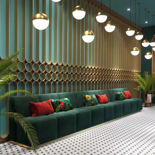 Donald Modular is a versatile upholstered bench designed for dining areas. Built with nosag springs and high-density foam, it ensures long-lasting comfort and support. The modular design allows flexibility, while a wide selection of professional fabrics enables full customization to suit any hospitality space.