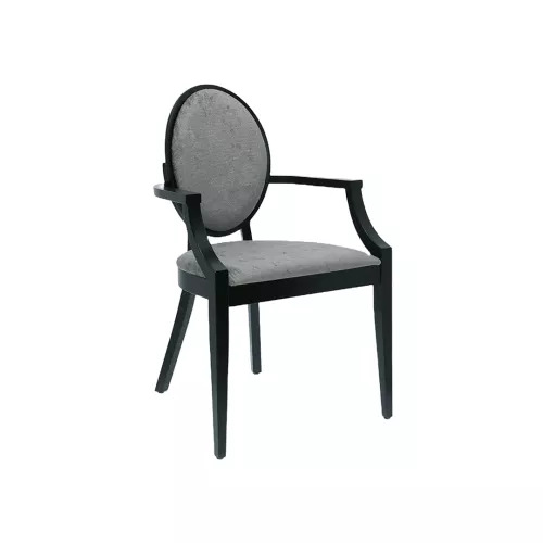 The Doris A chair is a bestseller that embodies timeless elegance and comfort. Its distinctive elliptical backrest and soft upholstery create a refined look enhanced by elegant armrests. Crafted from durable beech wood and offered in various finishes and fabrics, Doris A is an excellent choice for stylish HoReCa interiors.
