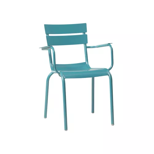 The Elvin A terrace chair is a stylish and durable seating choice designed specifically for restaurant and bistro patios. Crafted with a robust aluminium frame, it features a weather-resistant color powder-coated finish and a sophisticated polished surface that adds a refined, contemporary look. The ergonomically contoured 2-bended seat ensures comfort during extended use, while the integrated armrests enhance support and relaxation. Lightweight yet sturdy, Elvin A is also stackable, making it easy to store and move when needed. Available in modern color options—blue, olive green, and anthracite—this chair effortlessly combines design, practicality, and comfort for demanding hospitality environments.