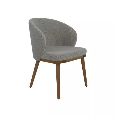 Emanuel 3 AW is a modern wooden chair with armrests, featuring a rounded backrest that flows seamlessly into the arms for ergonomic comfort. Its beech wood frame, available in multiple finishes, complements an upholstered seat and backrest in professional fabrics or faux leather. Wooden underframe details add elegance, making it ideal for diverse horeca settings.