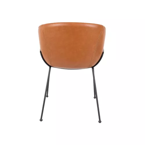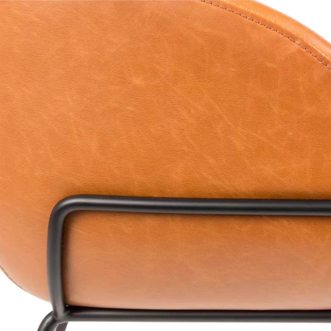 The Feston Armchair combines comfort and industrial style with its sturdy black powder-coated steel frame and curved armrests. Available in three finishes—grey fabric, brown PU leather, or black PU leather—it features decorative stitching that adds texture and elegance to the upholstery. A versatile piece suitable for modern interiors.