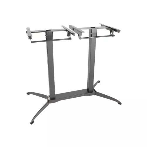 The Flexi Feet D Fold is a durable double column table base with a folding mechanism, crafted from steel for strength and longevity. Designed to fit table tops up to 120x80 cm, it features mechanical feet that adjust to uneven surfaces, ensuring stable, wobble-free tables. Ideal for both indoor and outdoor horeca spaces. Table tops sold separately. Assembly required.