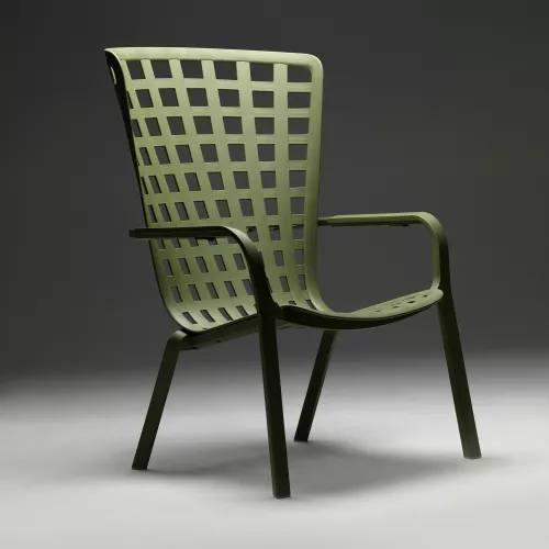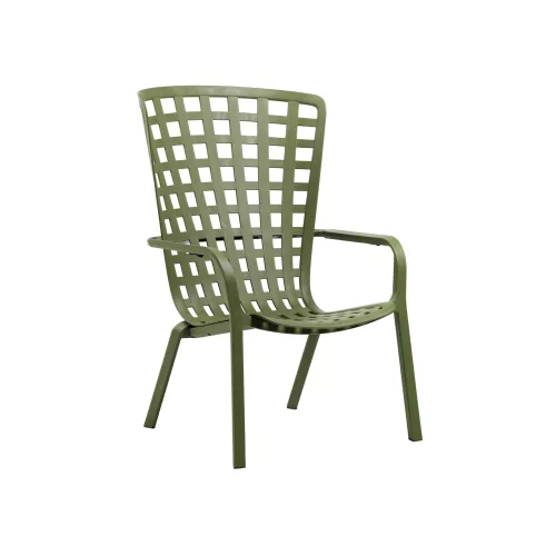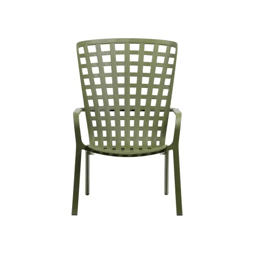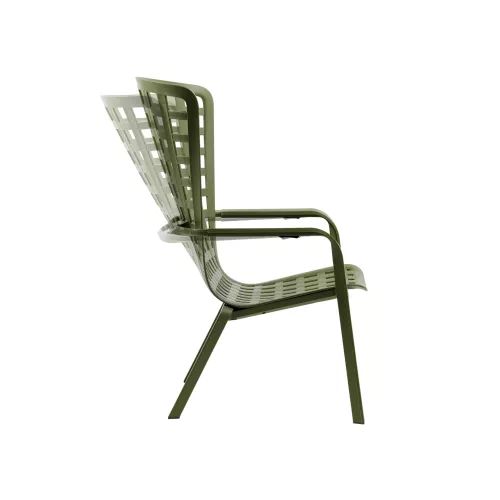 Folio is an elegant outdoor reclining armchair designed for comfort and style, with a flowing, enveloping backrest that seamlessly merges into a generously lowered seat. Made from durable fiberglass resin, it features a modern perforated square pattern and a matte finish, available in sophisticated colors like white, anthracite, tortora, agave, and tobacco. The chair reclines into two comfortable positions, allowing you to relax effortlessly in the open air. Cushions are available on request and designed specifically for outdoor use, crafted from Lino fabric at approximately 40% extra cost. The non-removable cushions are 7 cm thick, made with polyurethane foam padding at a density of 18 kg/m³, and secured with fabric straps and Velcro for a clean, secure fit. Cushion colors include Arctic and Felce, both blending beautifully with the chair’s natural tones. Folio is the perfect addition to any terrace, patio, or garden space where style and relaxation meet.