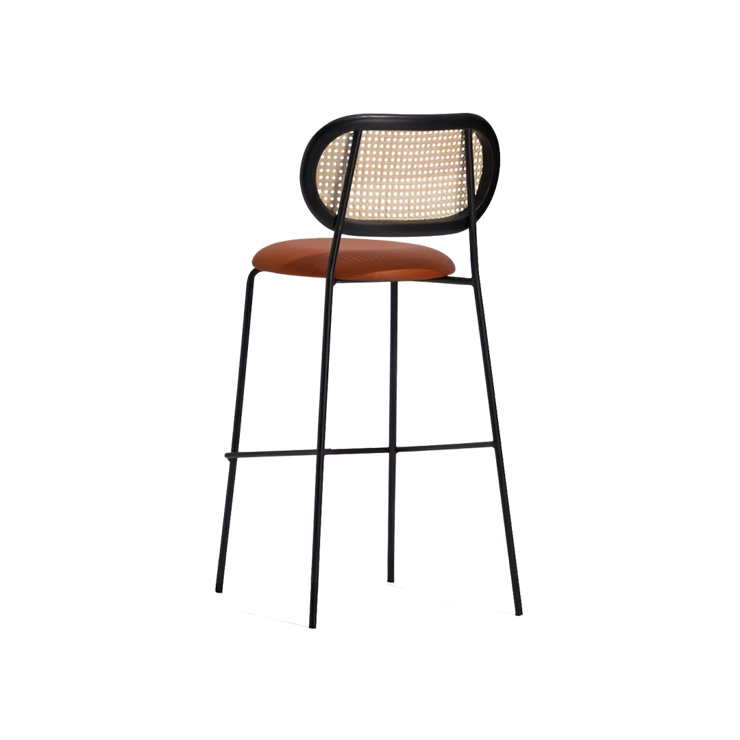 Fortune BK is a refined barstool featuring a durable steel frame, an upholstered seat, and a stylish cane backrest. Upholstery options include a broad selection of professional fabrics or faux leather designed for intense wear. Equipped with a metal footrest, it fits perfectly in bars and horeca venues, blending seamlessly with various interior design styles.
