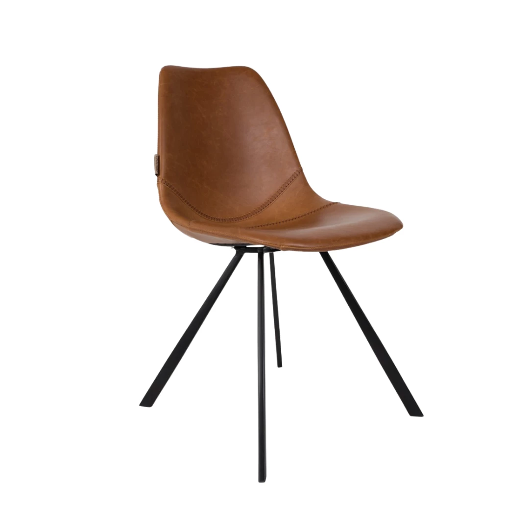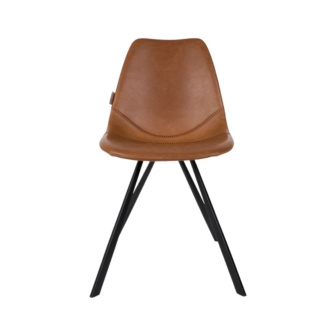 The decorative stitching on the vintage-style shell, paired with the clean, straight lines of the base, gives this chair and barstool a sleek contemporary look. Available in black or cognac synthetic leather.