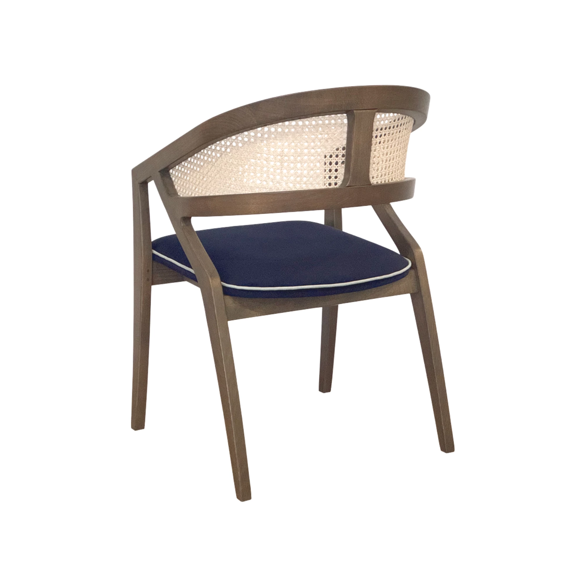Discover the refined charm of the Freya chair — a perfect blend of classic design and contemporary elegance. Crafted with sturdy beech wood legs, this chair features a cane backrest that brings a touch of tradition and sophistication to any interior. The upholstered seat with custom fabric (COM) and decorative piping adds both comfort and style. Designed especially for indoor use in restaurants, cafes, and hospitality spaces, Freya combines durability, beauty, and a timeless aesthetic. A true expression of warmth and craftsmanship, ideal for venues seeking distinctive seating solutions.