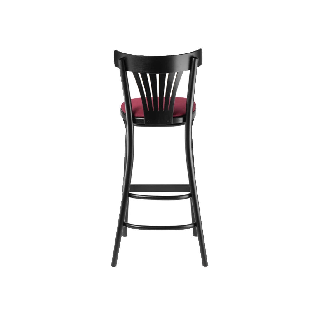The Hans BK wooden barstool blends historic design with modern comfort. Built on a solid beech wood frame with a wooden footrest, it is available with veneered or upholstered seat in a wide range of professional fabrics or faux leather. Offered in multiple wood stain colors, it’s perfect for bars, bistros, and horeca spaces.