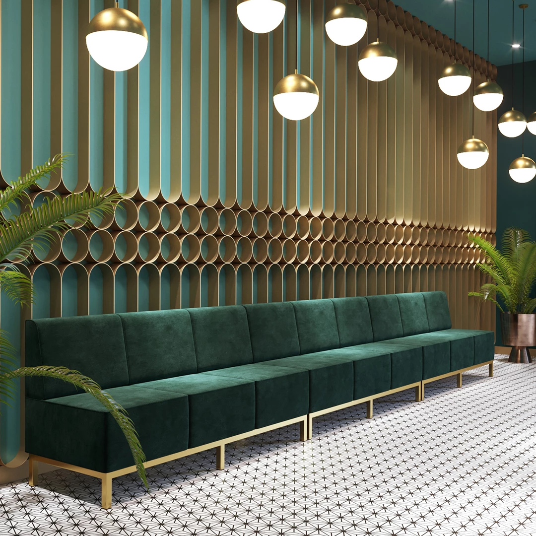 Heidel Bench is a stylish upholstered bench designed with nosag springs and high-density foam, offering superior comfort and resilience. It can be tailored to your specifications and upholstered in a wide range of professional fabrics or synthetic leather, making it ideal for any modern hospitality space.