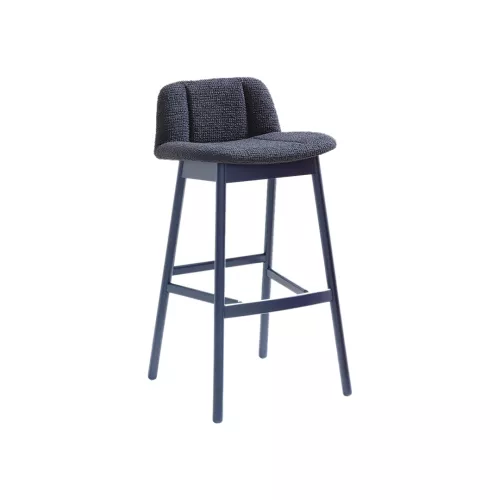 Hippy 639 is a stylish barstool with a sturdy beech wood frame and a fully upholstered seat and backrest, offering both comfort and elegance. The frame can be finished in various wood stain colors, while the upholstery can be customized using a wide selection of professional fabrics, making it a versatile choice for any modern hospitality space.