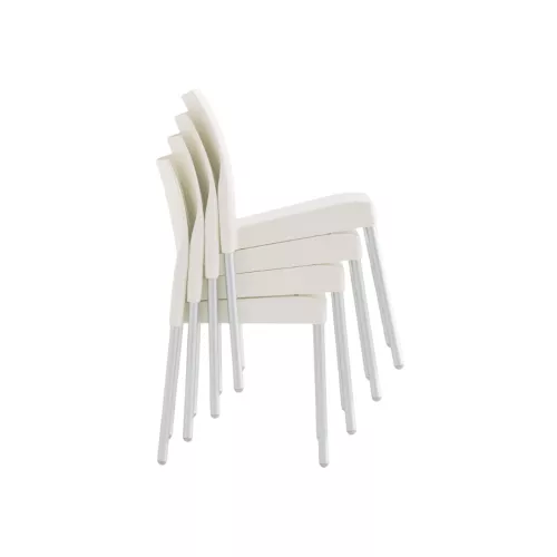 Ice 800 is a modern and durable chair designed for both indoor and outdoor use. It features Ø28 mm anodized aluminium legs that are securely inserted into a robust polypropylene shell, created using advanced gas-air injection moulding technology. The shell is reinforced with fiberglass for added strength and is antistatic and UV-resistant, making it ideal for long-term use in various environments. The hammered surface finish adds a unique texture and a contemporary look, while the aluminium extrusion ensures lightweight strength and stability. Ice 800 is the perfect blend of functionality, innovation, and modern design.