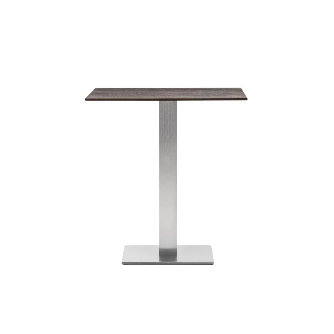 The Inox 4441 is a robust and practical dining table base, ideal for horeca environments. Featuring a sand-blasted cast-iron square base and a sleek stainless steel column, it blends durability with minimalist aesthetics. Suitable for table tops up to 90x90 cm. The top is not included. Easy to assemble and adaptable to various interior styles, this 73 cm-high base ensures long-lasting stability.