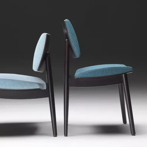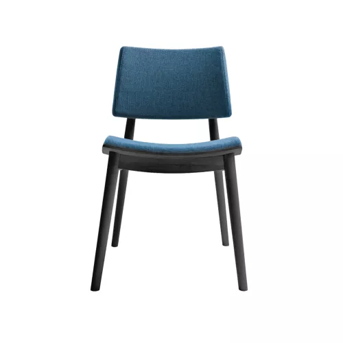 The Japan S chair draws inspiration from traditional woodcraft, combining curved plywood and solid beech turned by hand. With a sturdy beech wood frame and high-density foam, it ensures durability under intensive use. The seat and back are upholstered in fabric, eco-leather, or COM. Wood stains available. Ideal for restaurants, hotels, or cafés.