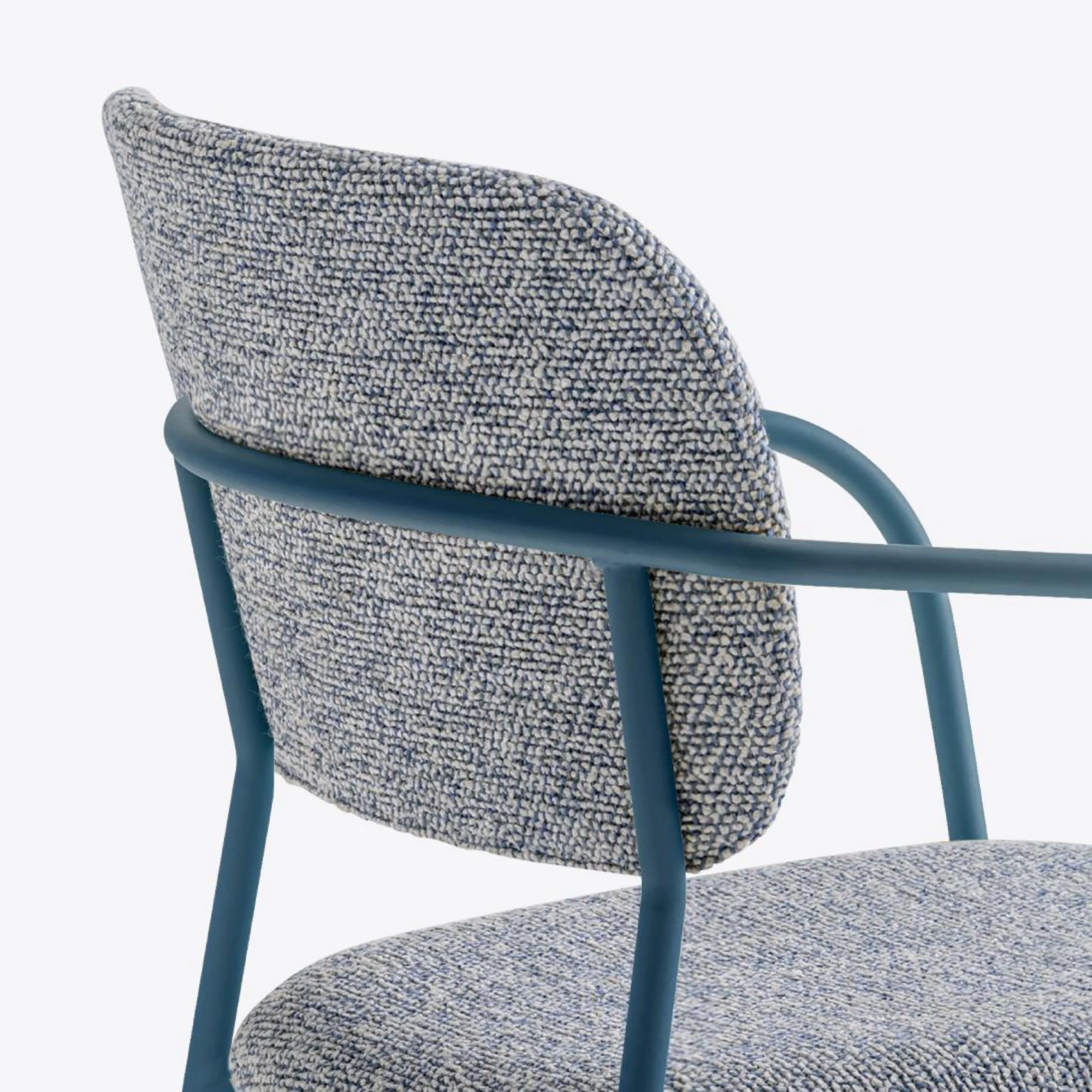 A refined balance of shapes, ergonomics, and subtle elegance defines this armchair-style seating. The upholstered seat and backrest, gently divided by a functional opening, create a light and airy silhouette while offering a cocoon of comfort. A slender steel frame supports the structure with effortless grace, adding a contemporary touch. With a wide range of upholstery options in fabric or leather and multiple steel finishes, it invites complete customization to harmonize beautifully with any hospitality environment—from chic restaurants to modern lounges and stylish hotel spaces.