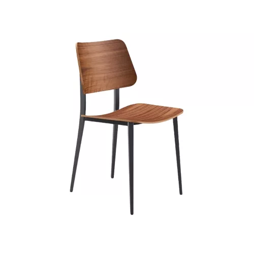 The Joe S M LG chair features a four-legged lacquered steel frame with a veneered wooden seat and backrest. Its elegant design and durable structure make it ideal for a variety of HoReCa environments. Available in multiple frame colors and wood finishes, Joe offers wide customization options to perfectly match any contemporary space.