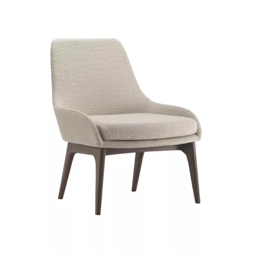 Jojo L is a stylish lounge armchair designed for horeca settings. Built on a solid beech wood frame coated in durable polyurethane lacquer, it features full upholstery with high-resolution foam for lasting comfort. Available in a wide selection of professional fabrics or faux leather, Jojo L can be customized to fit any interior design.