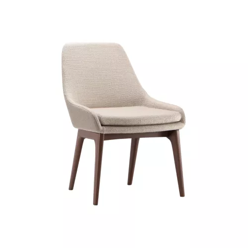 The Jojo S chair is a perfect expression of Italian quality and timeless style. Designed for comfort and elegance, it stands out with its soft curves and sturdy beechwood frame. The seat and backrest can be upholstered in a wide selection of fabrics or leathers, or you can provide your own fabric to achieve a truly bespoke look. The wooden base is available in multiple stain finishes, allowing for full customization. Whether for restaurants, cafes or lounges, Jojo S blends durability with design.