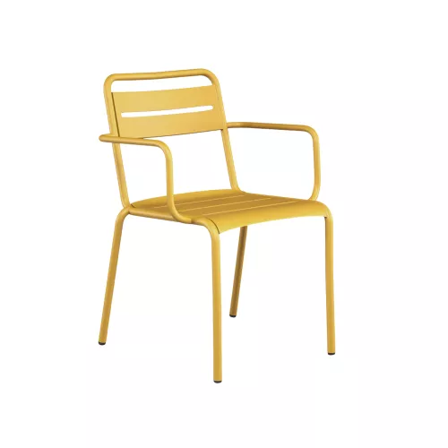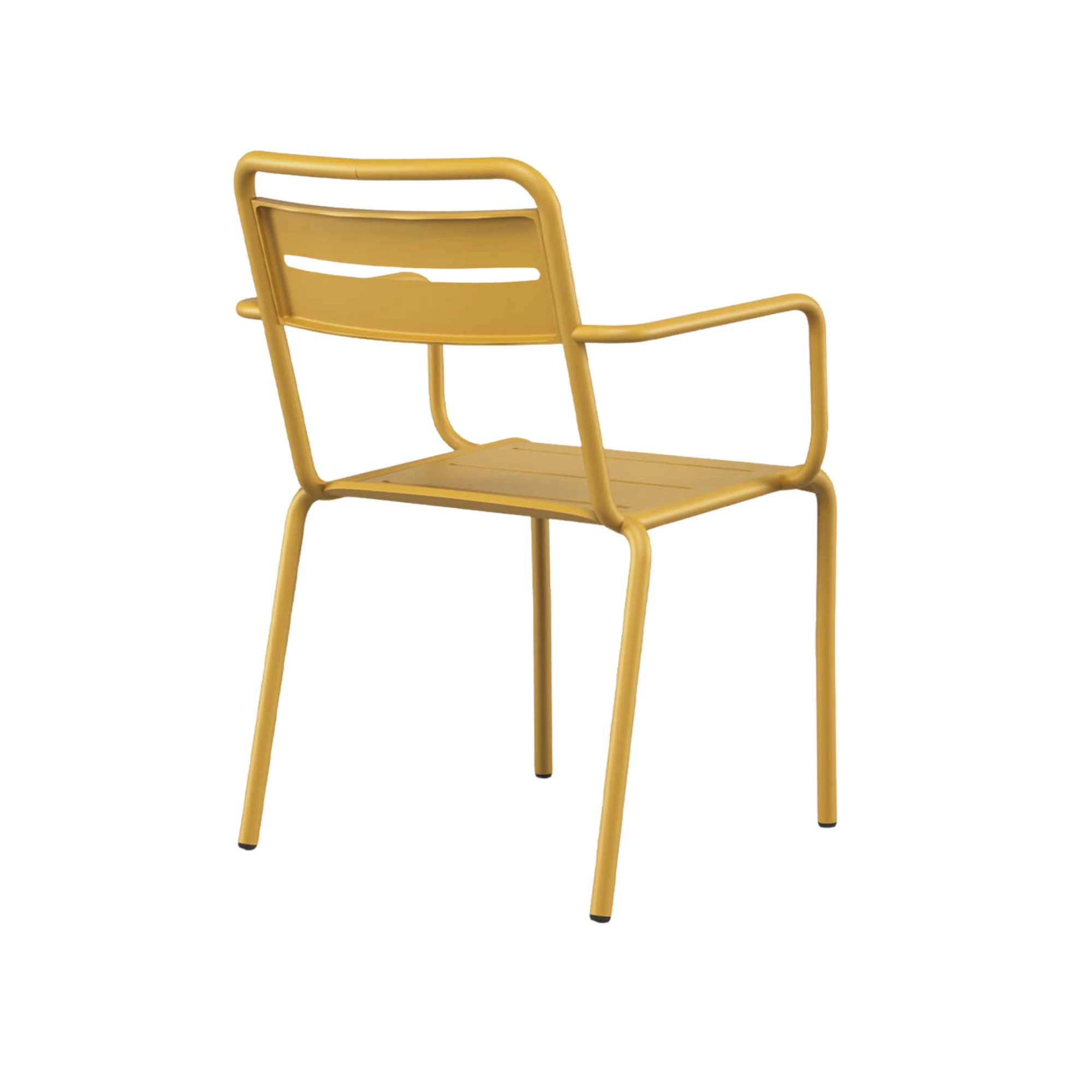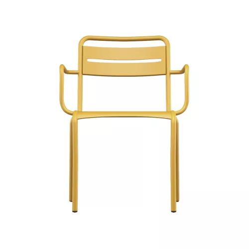 Knutt 2 A is a steel outdoor chair with armrests, defined by its soft lines and bright, modern character. Designed for horeca environments, it combines comfort with bold color options to suit various design styles. Its clean, casual look makes it a perfect fit for terraces, patios, or other outdoor hospitality areas looking to add personality without compromising durability.