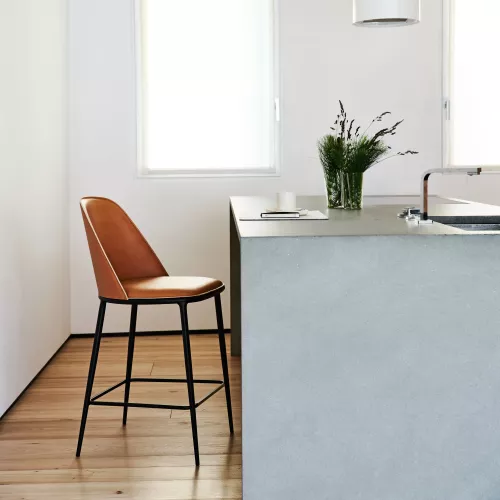 A timeless stool with a sleek four-leg metal base and refined leather upholstery. The seat and backrest are covered in premium leather or luxurious Tuscan leather, offering both durability and sophistication. With a height of H75, this stool is perfect for bar counters and elegant hospitality spaces seeking a touch of Italian craftsmanship.