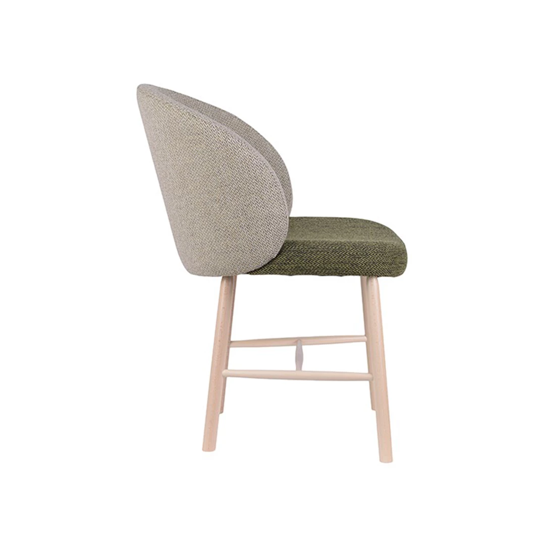 Mona is a refined side chair crafted from solid beech wood and beech plywood, offering both durability and timeless elegance. Its upholstered seat and back ensure superior comfort, making it an excellent choice for restaurants, bistros, and stylish interior spaces. The sturdy wood frame showcases the natural beauty and strength of beech, while the soft upholstery adds warmth and sophistication. Built to commercial standards, Mona balances functionality and aesthetics with care and precision. The fabric requirement is 1.60 linear meters in total, divided between the seat (0.60 lm) and the back (1.00 lm), ensuring efficient material use and consistent quality. Perfect for creating an inviting and elegant dining atmosphere, the Mona chair seamlessly blends comfort, design, and craftsmanship, making it a versatile addition to any modern or classic interior.