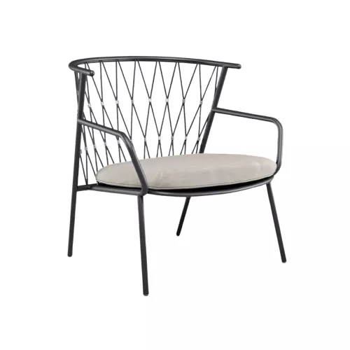 The Nef Lounge blends contemporary elegance with durable materials, making it ideal for refined outdoor settings. Crafted with a combination of aluminium, stainless steel, and synthetic rope, this chair offers a perfect balance between strength and modern aesthetics. The comfortable seat and back cushions ensure a relaxing experience for your guests, adding warmth and character to any dining atmosphere. Designed for both comfort and longevity, Nef Lounge is a reliable and stylish choice for hospitality spaces.