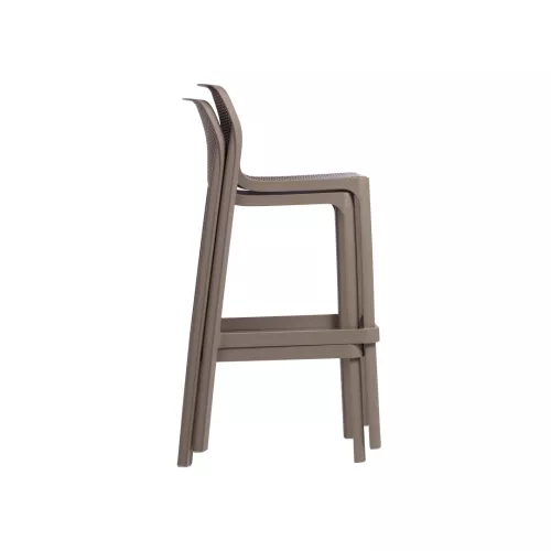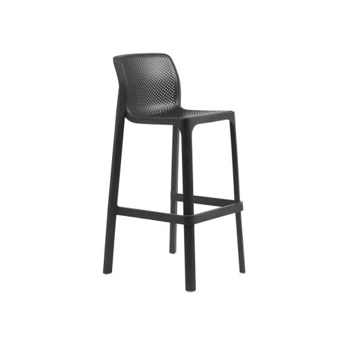 Net BK is a monobloc barstool made from fiberglass-reinforced polypropylene with UV additives, perfect for outdoor horeca environments. Its matte finish and non-slip feet offer both style and stability. Available in various colors, the recyclable resin construction fits perfectly into multiple design concepts for bars and outdoor hospitality venues.