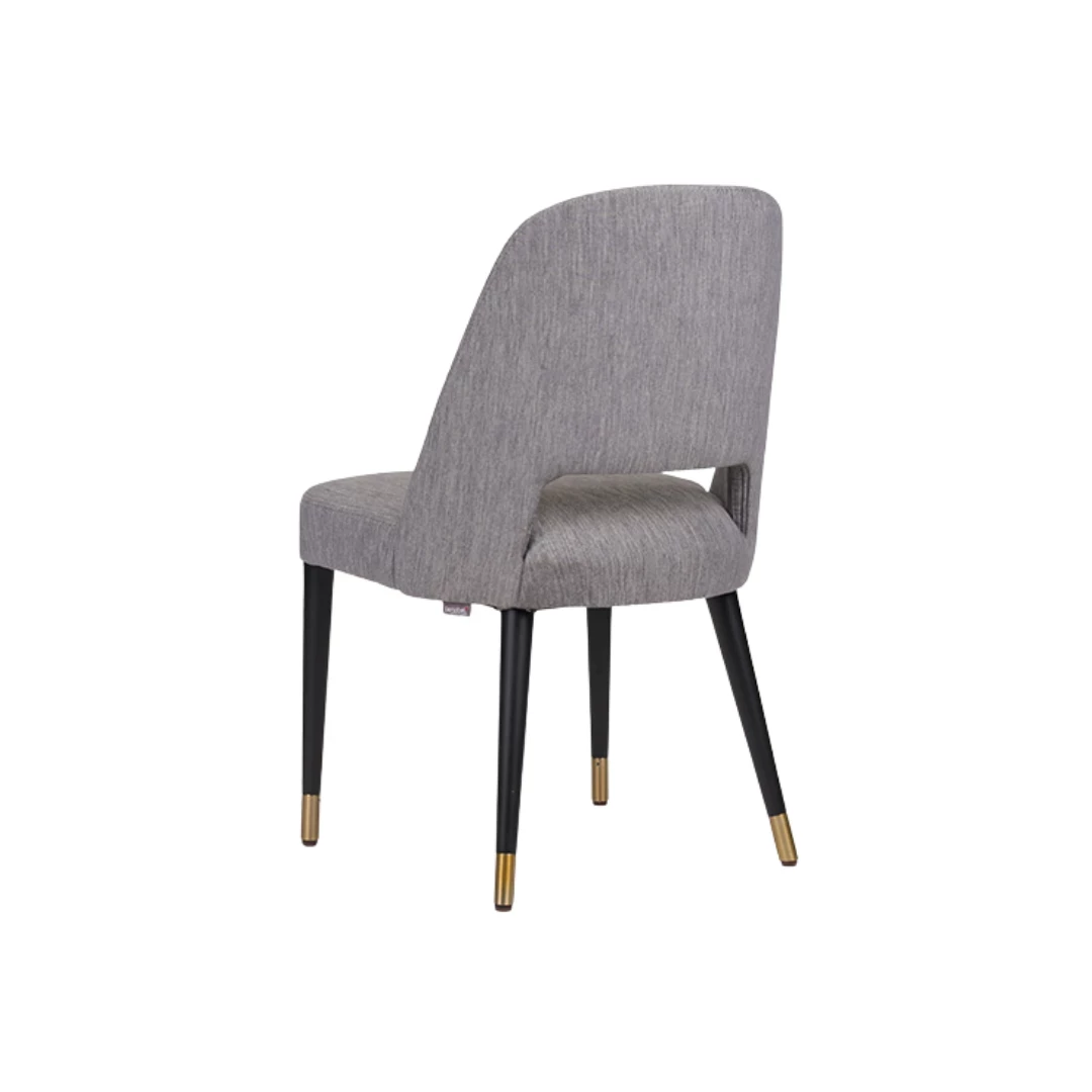 Nibirius S is an elegant upholstered chair crafted with a sturdy beechwood frame and refined golden caps on the legs, adding a touch of luxury. Ideal for stylish interiors, it features a balanced design suitable for hospitality spaces. The chair requires 1.32 meters of fabric and can be customized with a wide variety of professional-grade textiles, offering both comfort and visual appeal.