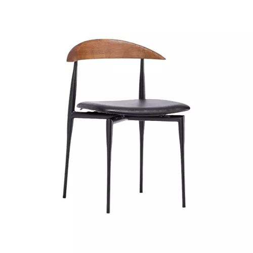 North is a versatile metal chair with a durable steel frame, upholstered seat, and wooden backrest. It offers a wide variety of customization options in professional fabrics or faux leather. A great choice for HoReCa settings and a range of interior design styles.