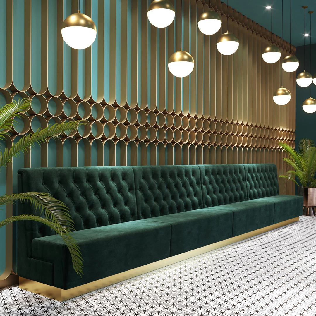The Paolo Bench is a customizable restaurant bench with sockel and nosag springs, ensuring high durability and seating comfort. It features high-density foam for long-term resilience. Available in a wide range of professional fabrics or synthetic leather. Designed to be produced according to the customer’s exact specifications.