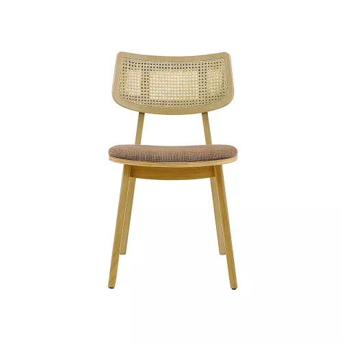 Pellman Cane is a stylish and comfortable chair designed for modern hospitality settings. Its solid beech wood frame, finished with polyurethane lacquer and available in multiple stains, ensures durability. The cane backrest adds elegance, while the upholstered seat with high-density foam delivers lasting comfort. Fully customizable with a wide range of professional fabrics.