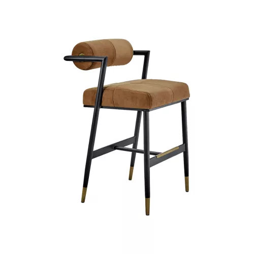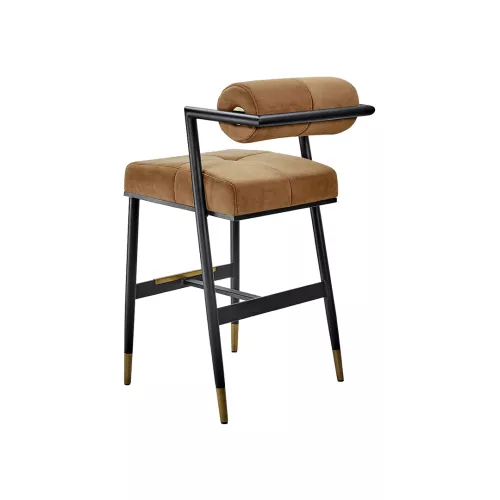 Rollo Bar is a stylish barstool with a black metal frame and upholstered seat and backrest. Designed to complement various bar or horeca interiors, it offers comfort and durability. Choose from a wide range of professional fabrics. Thanks to its customization options, Rollo Bar adapts easily to different styles and usage demands.